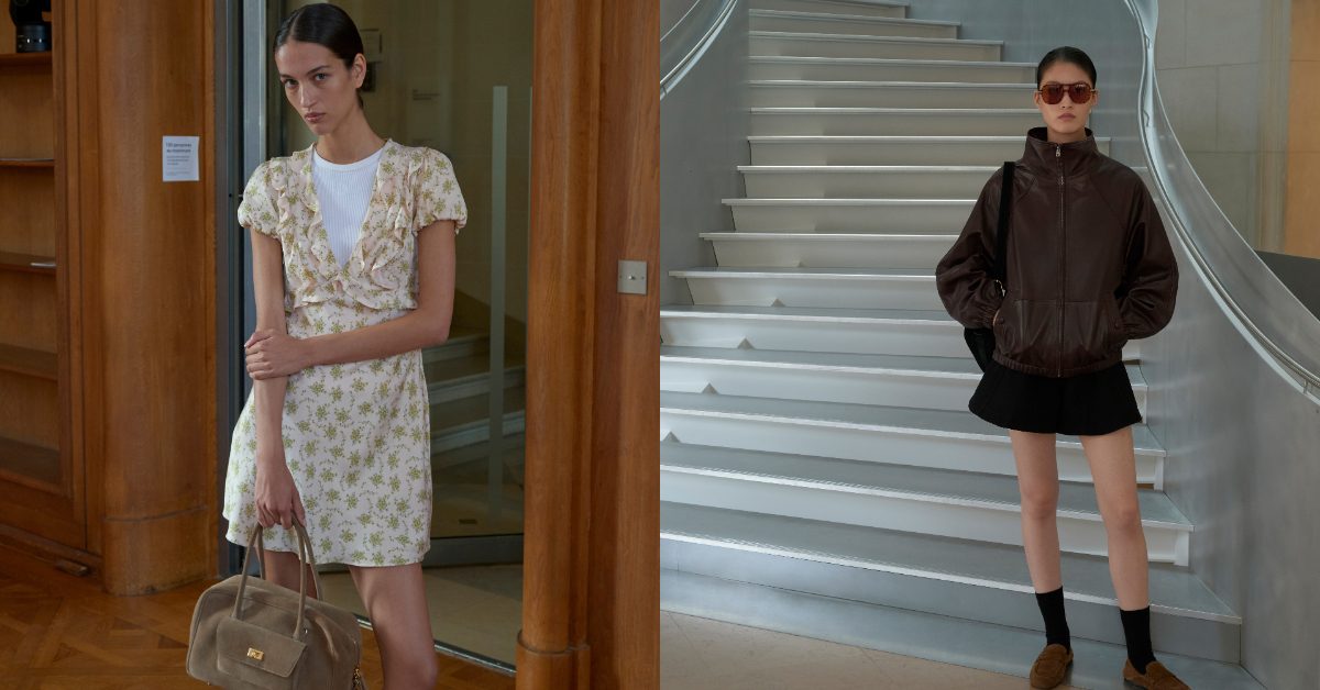 然而,這份流動感與夏日柔情並非字面呈現,而是與結構元素巧妙融合——收腰荷葉外套、重新演繹的剪裁工藝勾勒身形,寬版褲裝重塑比例。材質講述設計語言,細膩刺繡與豐富紋理交織出精緻質感。手腕上的新款 Mymi 包款,為整體造型注入都會女性氣息。對比交織成為本季風格語言:光澤與霧面、不透明與透視、柔韌與精準交錯共舞。