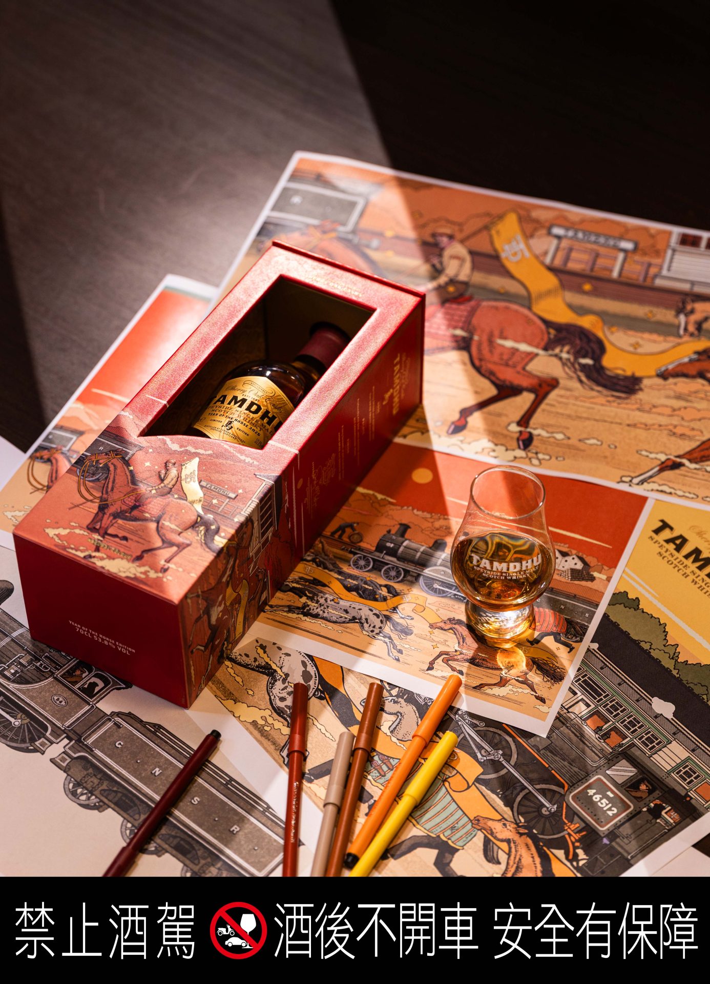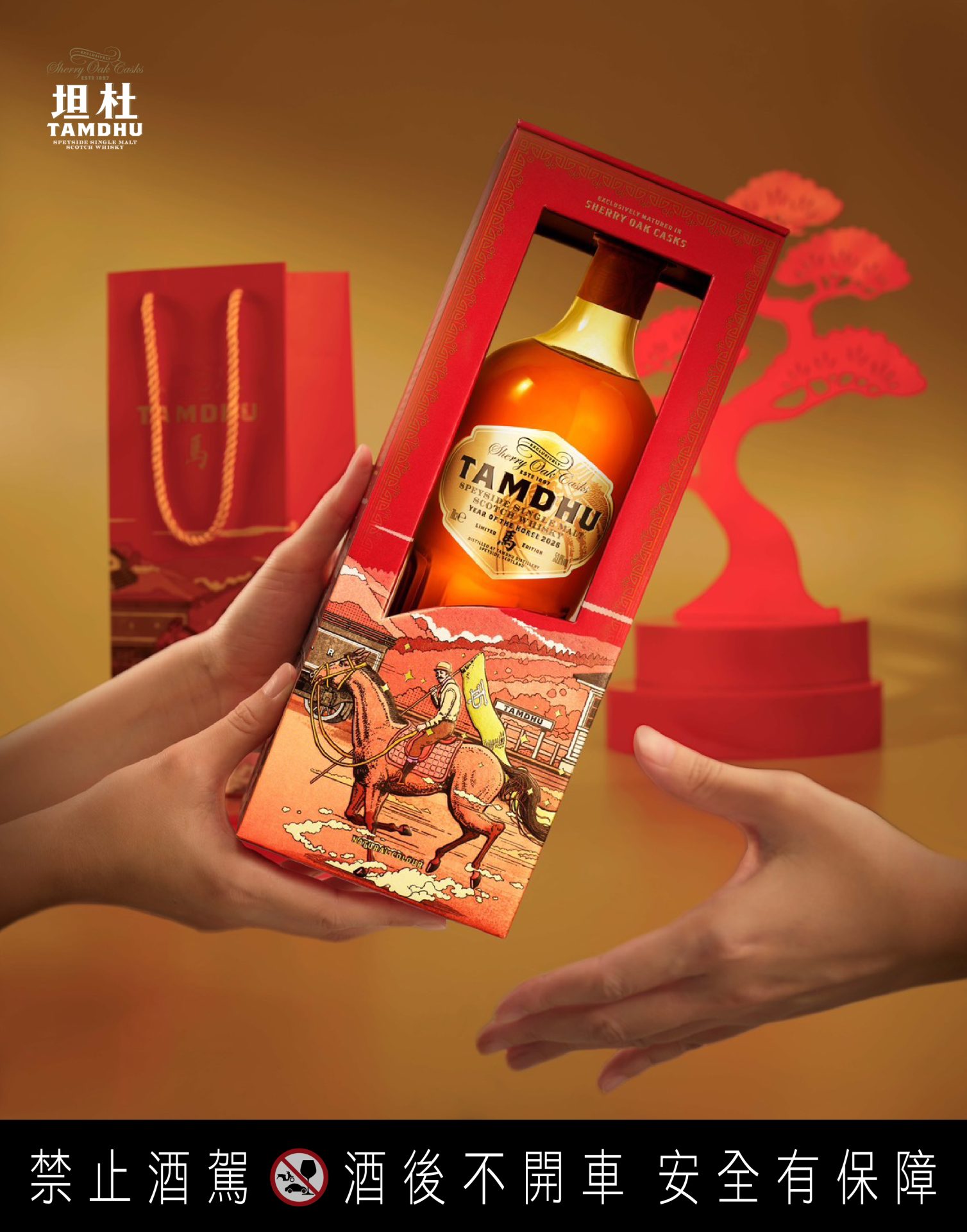 對於收藏家而言,一次收藏四瓶便能將鄒駿昇的完整畫作收入家中,無論陳列或送禮,都展現出強烈而不言自明的氣勢。在高端贈禮市場,這樣結合藝術價值、品牌故事與工藝堅持的產品,正是當代消費者尋找的標的。坦杜生肖系列自推出以來,憑藉卓越的雪莉桶風味與前所未見的東方美學禮盒設計,在威士忌市場建立極佳口碑並掀起收藏熱潮;火馬年限定版延續這份聲量,為2026年定義新一輪收藏巔峰。