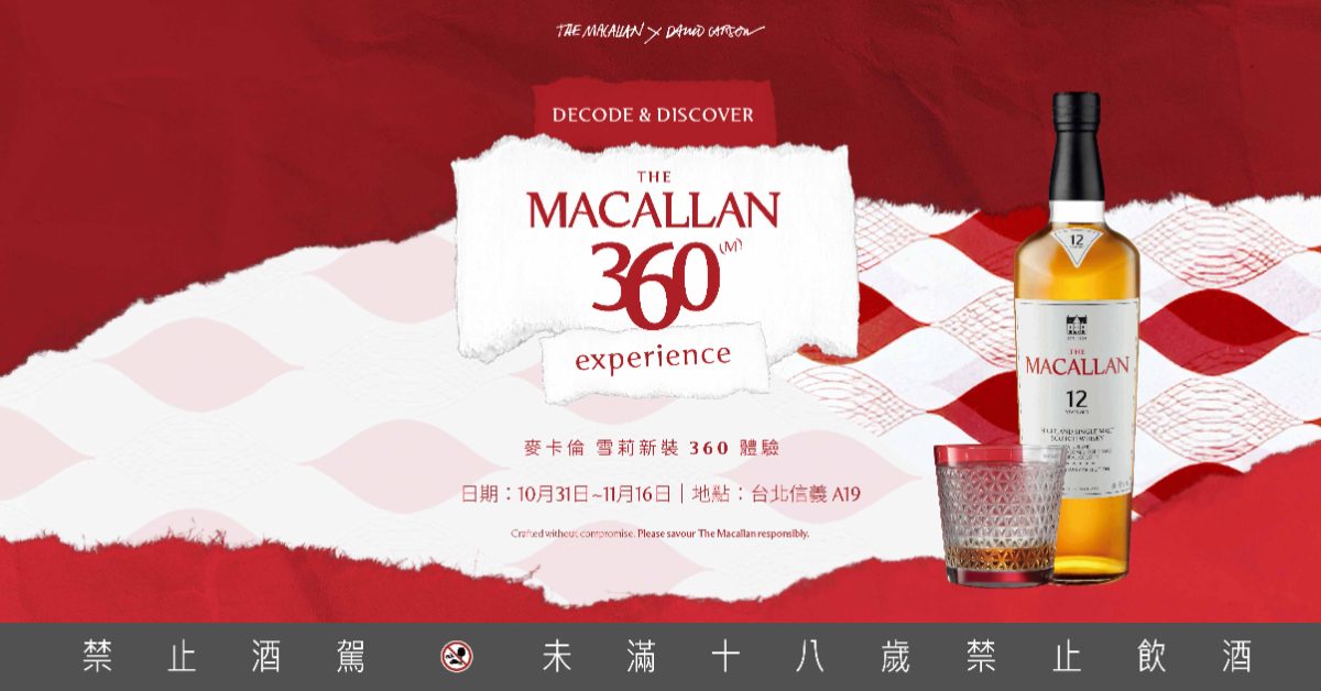 從10月31日至11月16日,《麥卡倫 雪莉新裝360體驗》將限時登場。這場展覽不僅展現品牌對風味與設計的極致追求,更為台北增添一處結合藝術與品酩的城市新地標。活動現場每日開放自由參觀,並於週末舉辦導覽與派對體驗。相關資訊可透過麥卡倫LINE官方帳號查詢與預約。